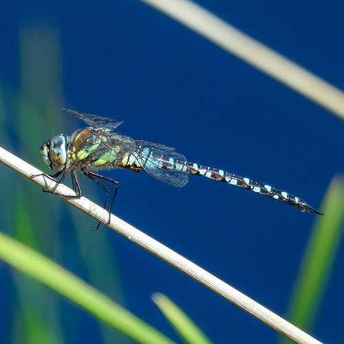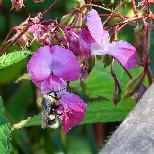 A trio of Mallards seemed to be posing by the tower on the Castle Semple Loch side. I noticed a Common Darter dragonfly sunning itself on reeds near the tower. But as I began my return journey back along the boardwalk a large dragonfly was patrolling the reeds along edges of the boardwalk. With a little patience, I waited until in landed and managed to get a very pleasing shot of what I later identified as a Migrant Hawker. There were masses of Himalayan Balsam plants in flower all along the boardwalk. The White-tailed Bumblebees and Green-veined White