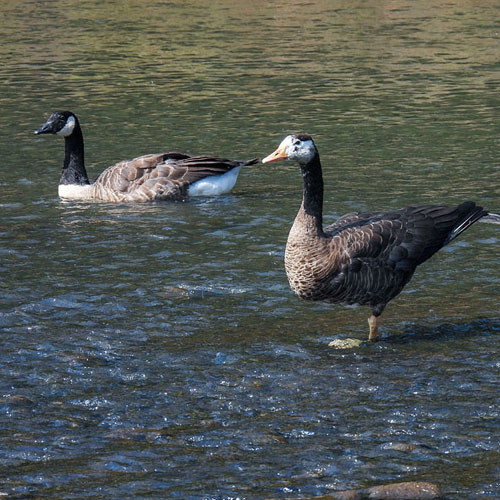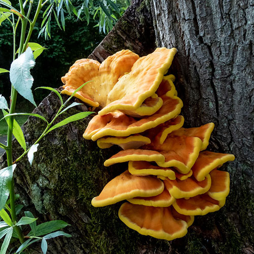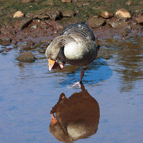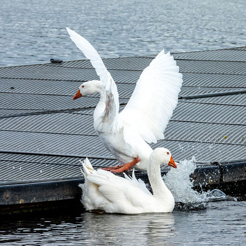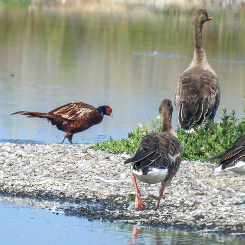 On the next day, which turned out to be my last day this week that I managed out with the camera, I first checked on a fungus I photographed some weeks ago, Artist’s Bracket. It was close to the Foreshore car park. It has grown. Next I parked at car park 4 and walked a favourite wee circuit around part of the loch. Not long after I started, I found a bright pink and yellow-coloured Chicken of the Wood fungi growing on a large tree just south of the car park. Next I noticed a group of Greylag Geese beneath the Starter’s Tower, and some Embden Geese in front of the Watersports Centre.
