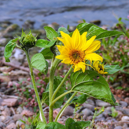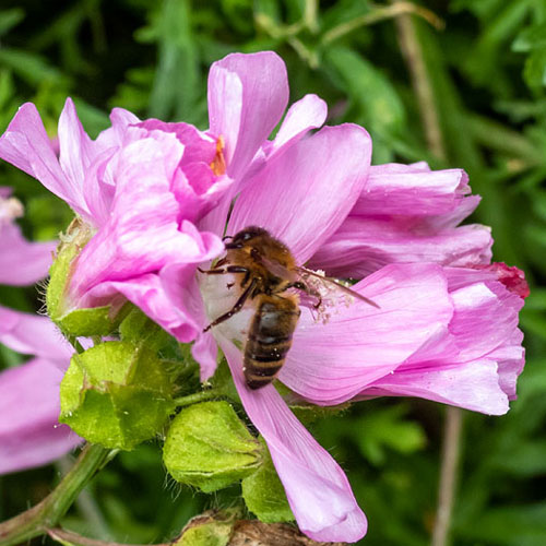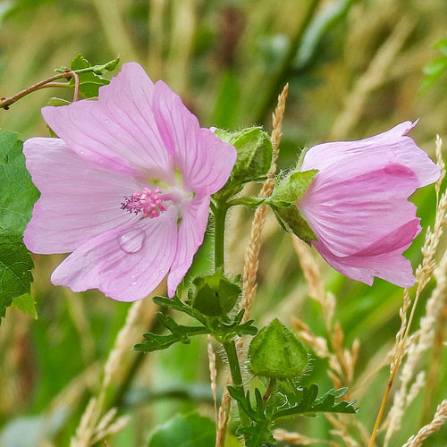 A lonely Sunflower was growing on the pebble banks of the loch, opposite the Watersports Centre. It was probably a result of uneaten seeds thrown to the swans. The Council’s wildflower project was past its peak but I did see a very pretty Musk Mallow in flower at the edge on the now