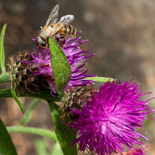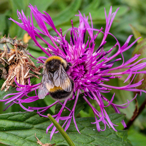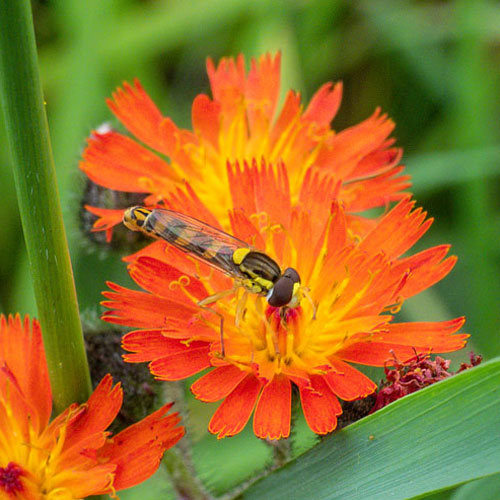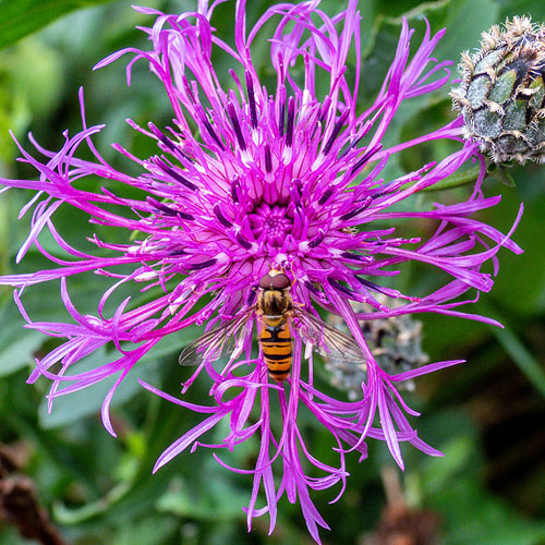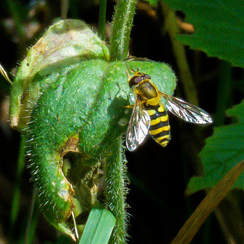 butterflies didn’t seem to mind them, but they have displaced the original plants such as the Common Knapweed enjoyed by the Syrphus ribesii hoverfly below, so upsetting the delicate ecosystem.