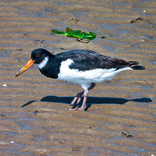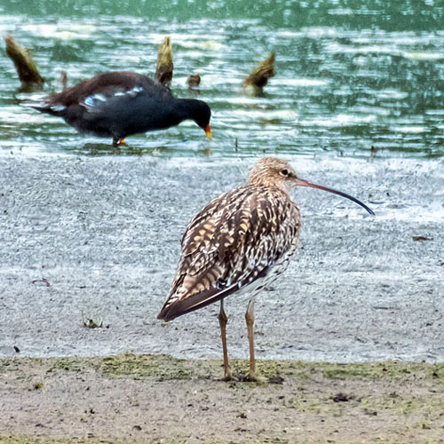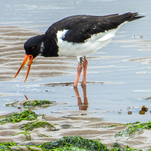 from a few Oystercatchers. A Curlew was using its long, curved beak to