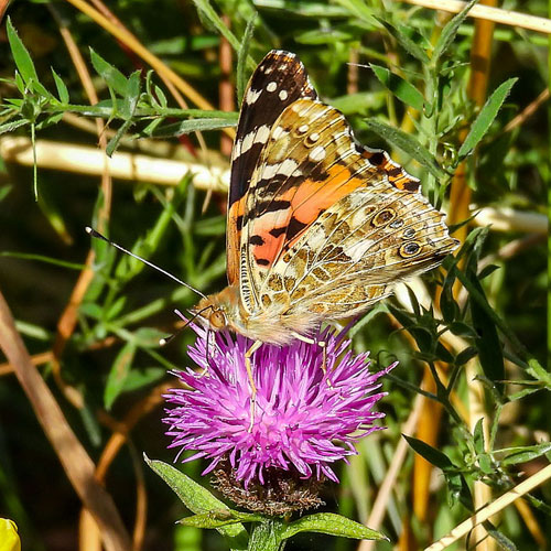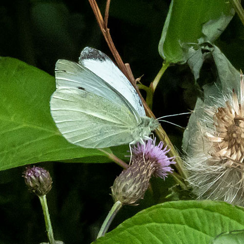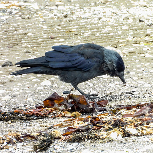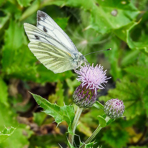 I snapped some Jackdaws that were foraging on the sands and my third butterfly species, a Green-veined White, turned up on Creeping Thistles, then a fourth, a Peacock that landed on the grass verge. A Red Admiral butterfly made it five - it was a Butterfly-Fest. A female Blackbird and a Honey Bee added to my pleasing list of sightings.