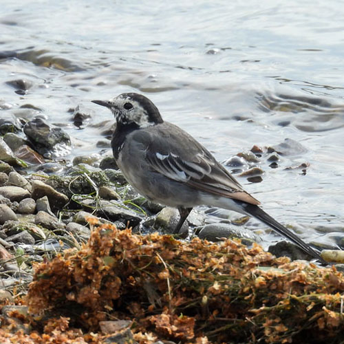 birds a lot nearer the sea wall. A female Pied Wagtail appeared just below the wall not far