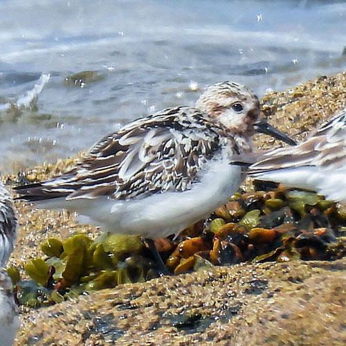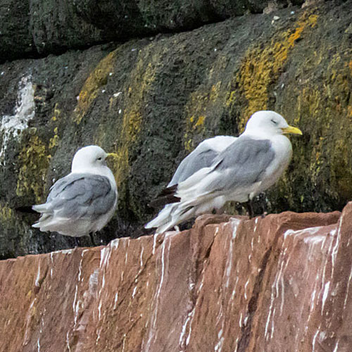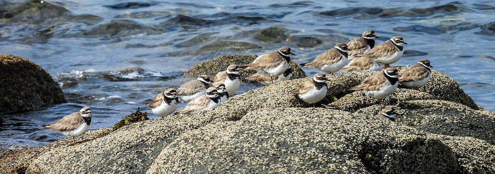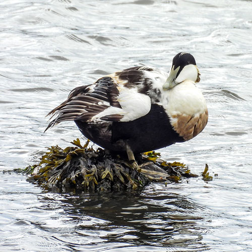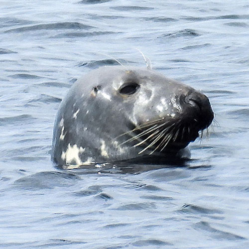I could also make out a Knot among the Ringed Plovers, as well as an eclipse drake Eider. The arrival of a gull onto the rocks caused the Eider to take to the water and paddle away past a few Grey Seals whose heads were bobbing in and out of the water.