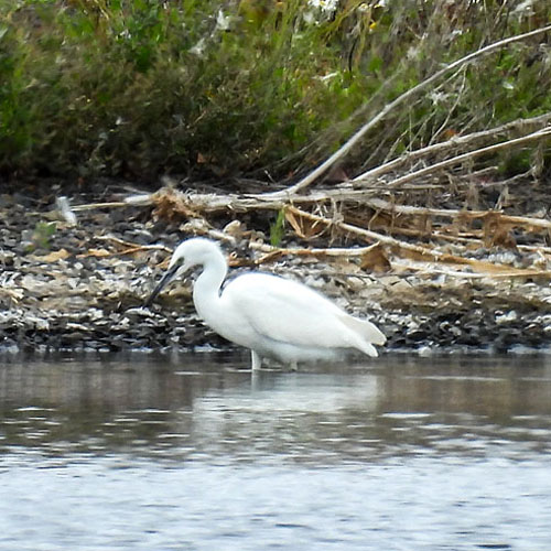 almost vacant, apart from a very distant Little Egret and a lone Oystercatcher.