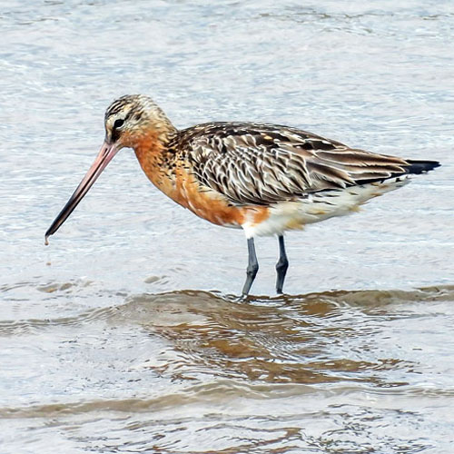 upon about a dozen Whimbrels and Bar-tailed Godwits wading fairly near the sea wall.