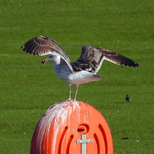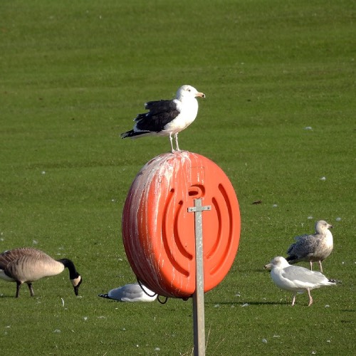 or orange beaks and legs) and Lesser Black-backed Gulls (large with yellow legs). Small numbers
