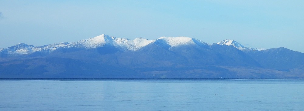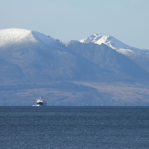 route as it crossed from Brodick to Ardrossan. The snow-covered hills make a stunning backdrop.