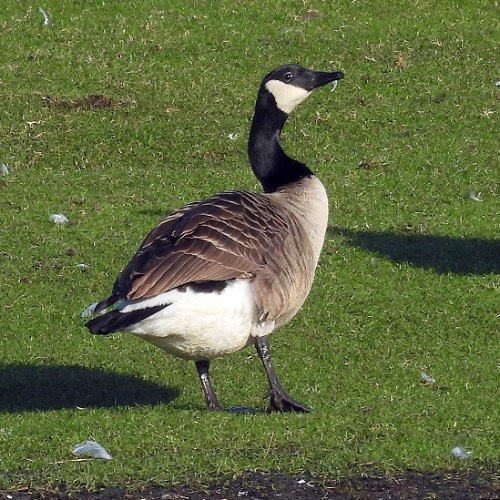 characteristic iridescent neck patch. A single Canada Goose was grazing next to the ruin.