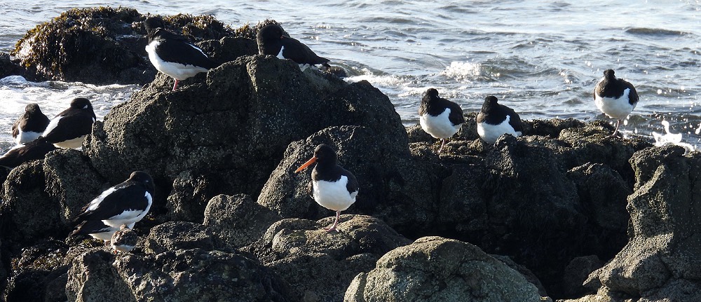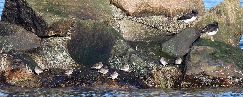 A small flock of Oystercatchers were gathered on the rocks at the tip of the Point. Like the Dunlins