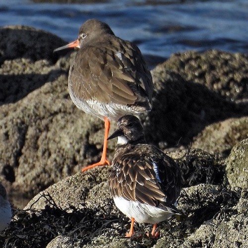 were keeping an eye out for possible threats. Some Redshanks and Turnstones were