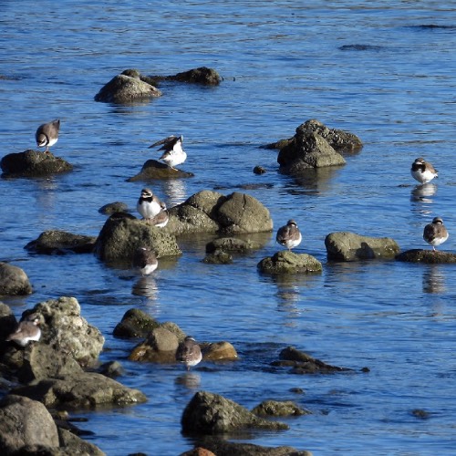 There were a large group of Ringed Plovers on rocks on the southeast edge of the