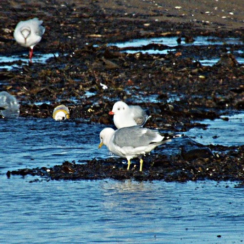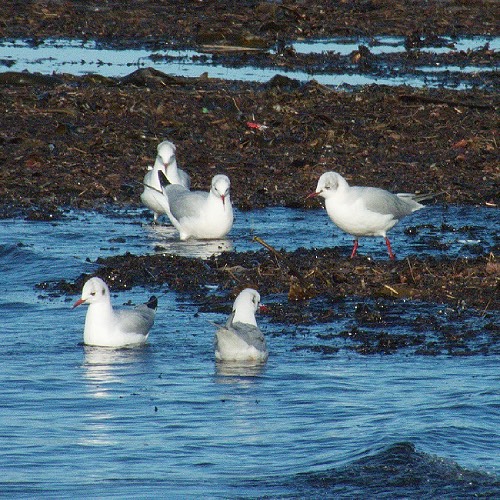 beach northwest of the Point: Black-headed Gulls, Herring Gulls, a Common Gull and