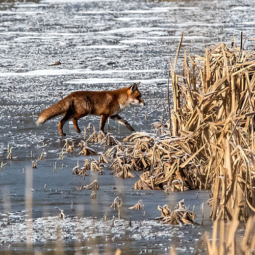 I was pleased to see a Red Fox on the icy haugh, no doubt hoping to catch one of the