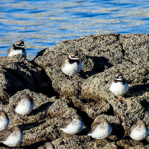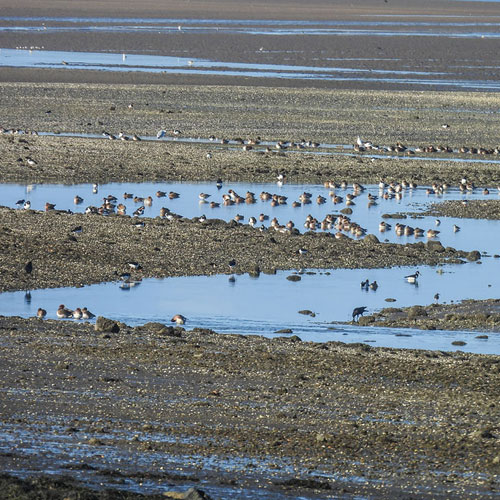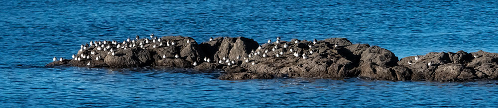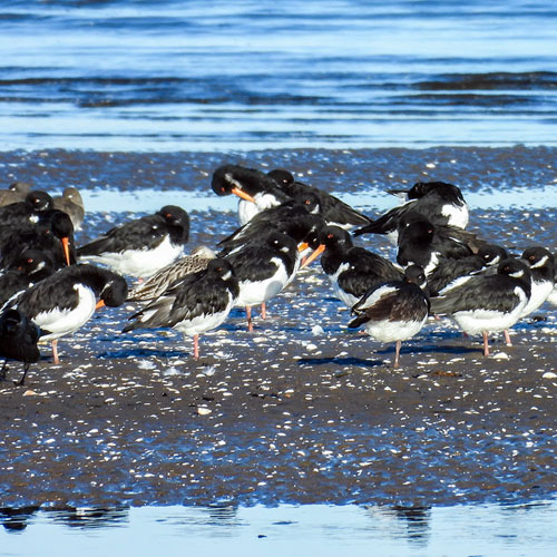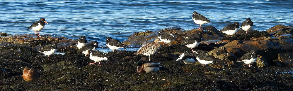 There was a large number of Oystercatchers massed on a long ridge of exposed rock.