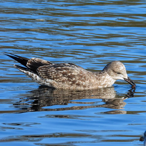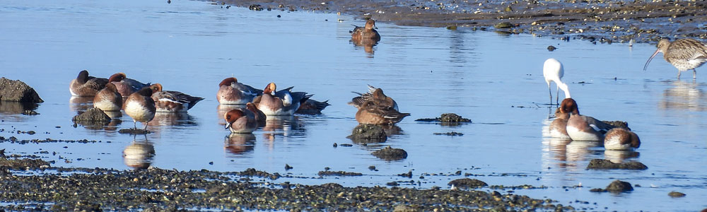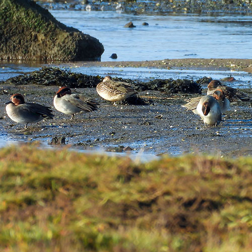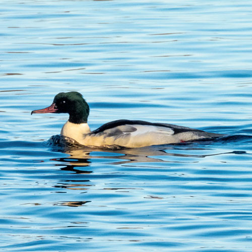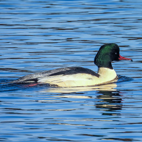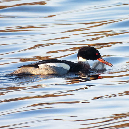 that was moving in the same light. Things got interesting when a pair of Red-breasted Mergansers paddled into the same section of the estuary. The female was diving for fish, but it was being harassed by Herring Gulls that were keen to rob her of any fish brought to the surface.