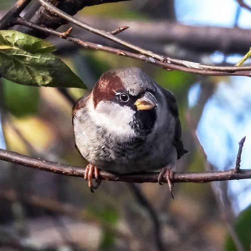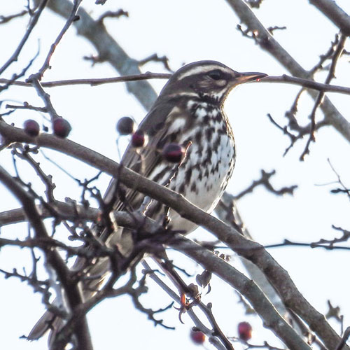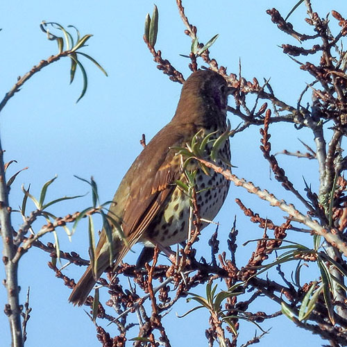 immediately came across, and just managed a shot of a flighty Song Thrush. Next I was very pleased to photograph a male Blackcap, the first we’ve recorded there. We always though, see a Robin, which is usually singing, and House Sparrows.