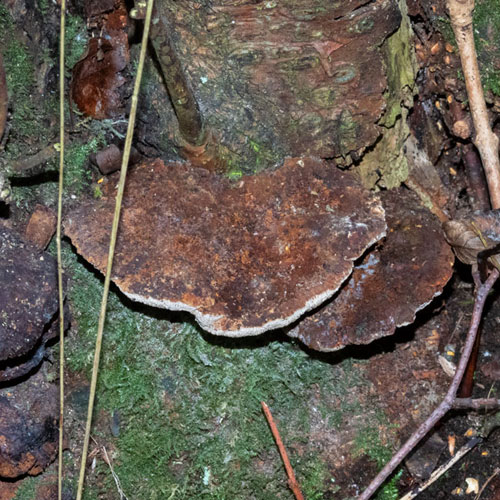 Bracket , a rust-coloured fungus. My final fungus find was a Glistening