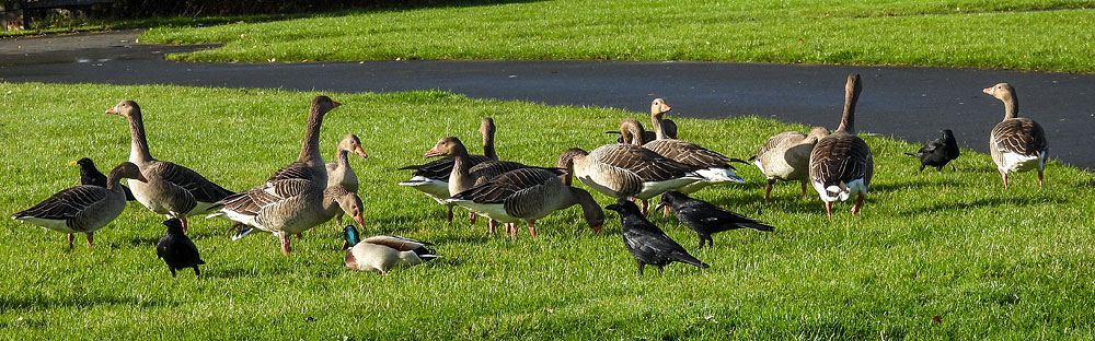 on the footpath. Someone must have thrown them bread since Greylags were there, with