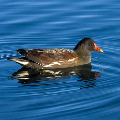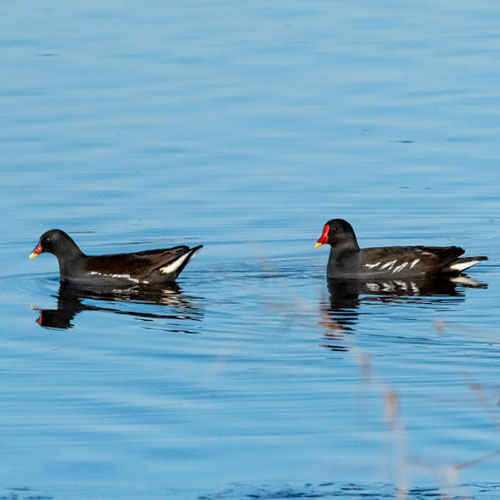 My next stop was the car park at the Auchenharvie Golf Course. The area surrounding the course often has interesting birds. At the wee pond at the end of Moorpark Road W, there were Moorhens, Mallards and Mute Swans.
