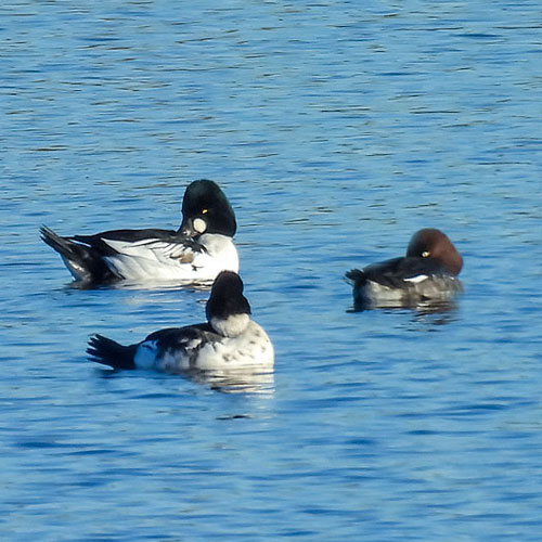 The Loch had mainly Herring Gulls (not shown), but there were more Mute Swans, Goldeneyes and female Lesser Scaups. I also spotted a Redshank tip-toeing across the fairways.