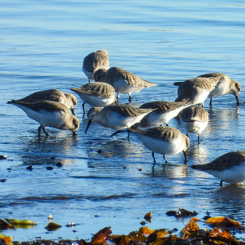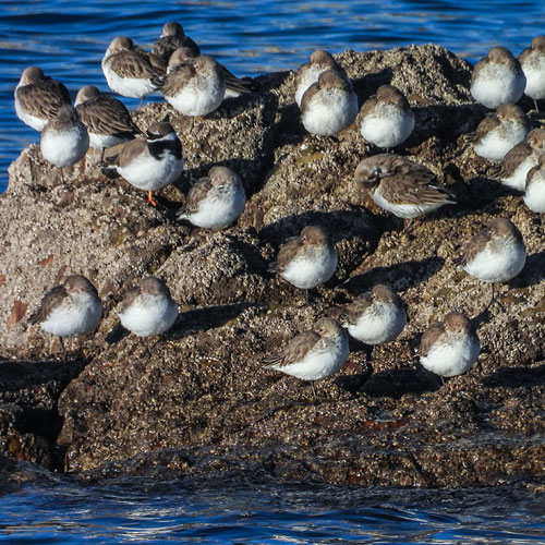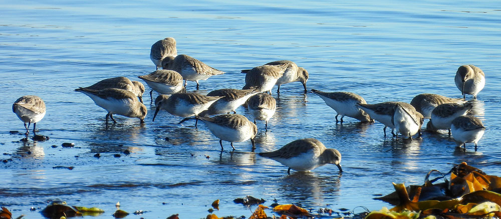 Just up the road from the golf course there is the seaside town of Saltcoats. I parked at the harbour and immediately noticed a large flock of small waders on a long narrow exposed rock at the north side of the harbour.