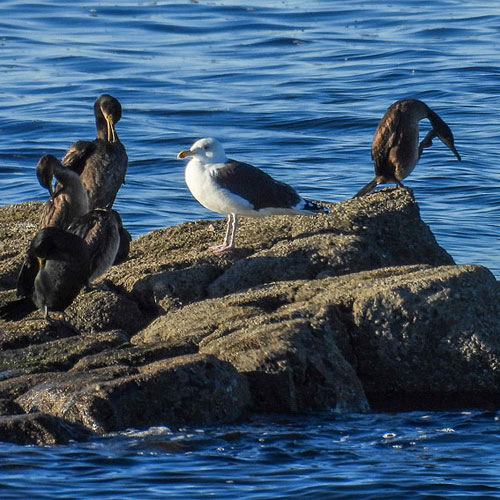 Herring Gulls and Great Black-backed Gulls were standing on other rocks with more preening Shags.