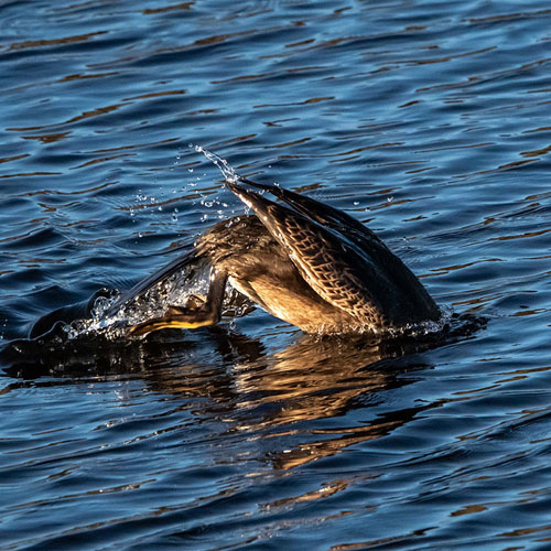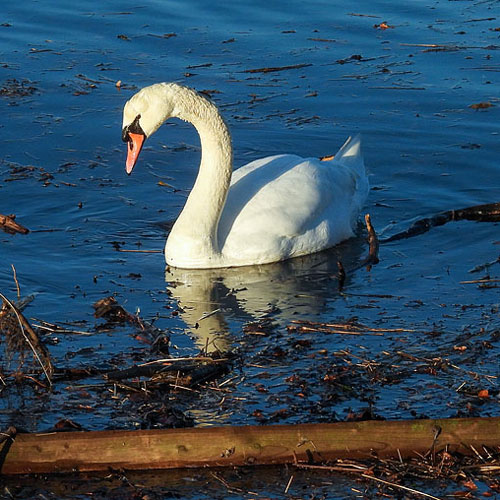 On my way home I decided to pop into Irvine Harbour for a cup of tea. I had visited there on the previous week and didn’t really intend taking any photographs. However, I spotted a couple of Shags diving in the amber sunlight, by the Scientist’s Bridge. And I rather liked the Mute Swan