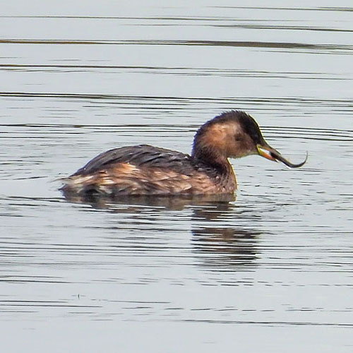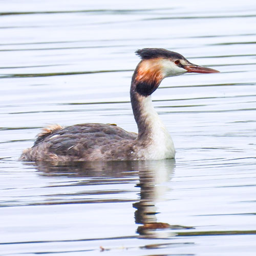weather was unchanged - dry but cloudy. A Great Crested Grebe was