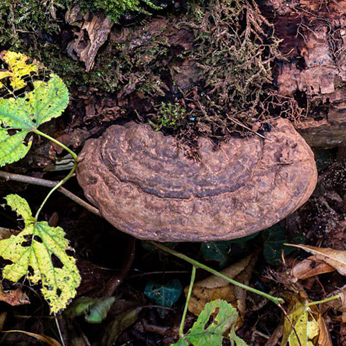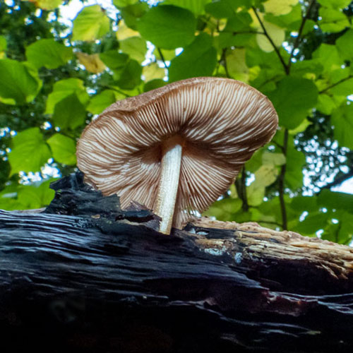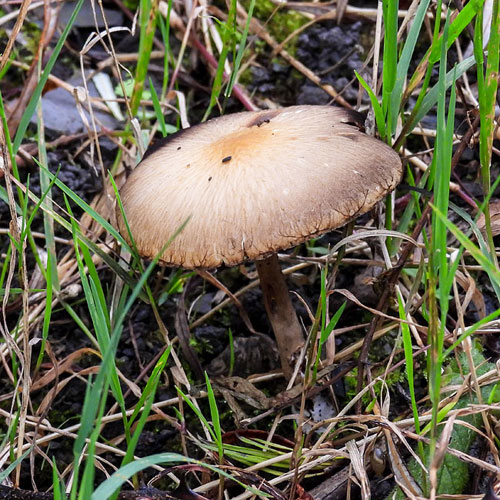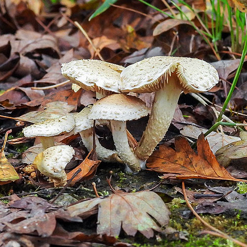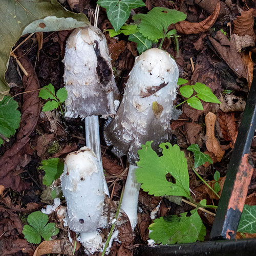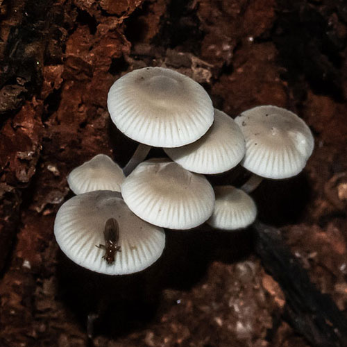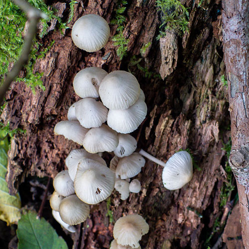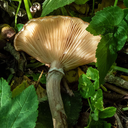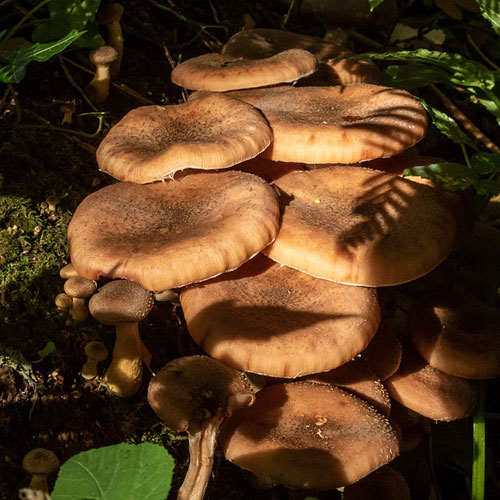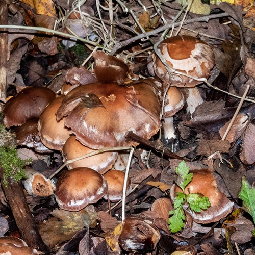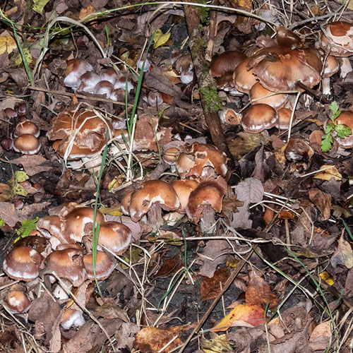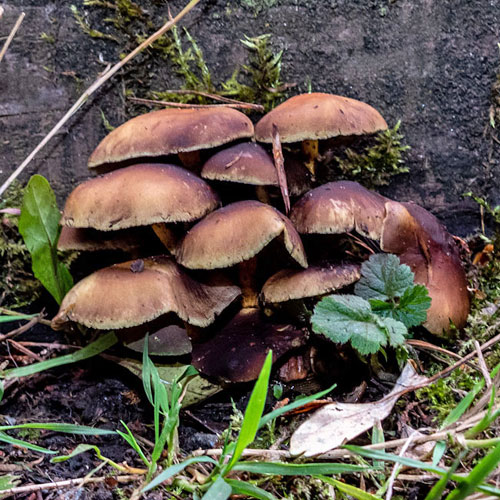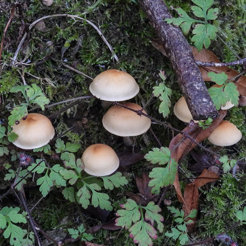 fungi, probably Common Stump Brittlestem, that nestled below a hedge.