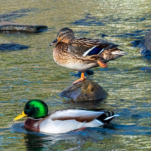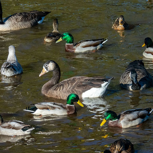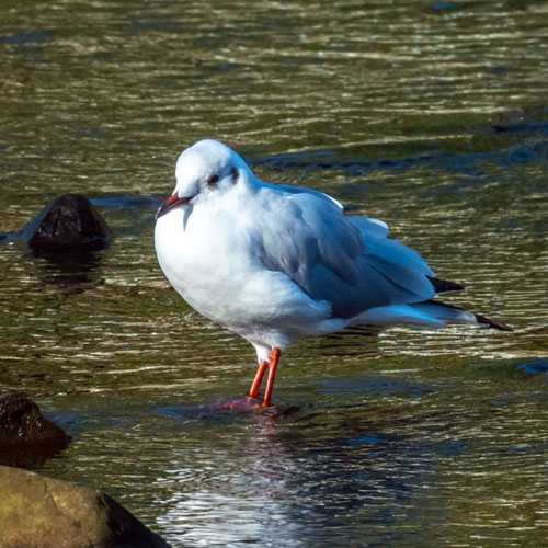 A walk to the Old Bridge produced some pleasing sunlit pictures of some “usual suspects”: Black-headed Gull, Jackdaw, Moorhen and Mallards. I also noticed a white goose standing with the Canadas. It is a Greylag hybrid - precise parentage unknown.