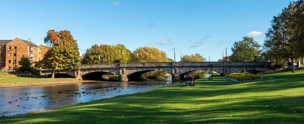 Below is the view of the “Store” Footbridge as seen from the New Bridge. The ochre leaves make a lovely autumnal scene.
