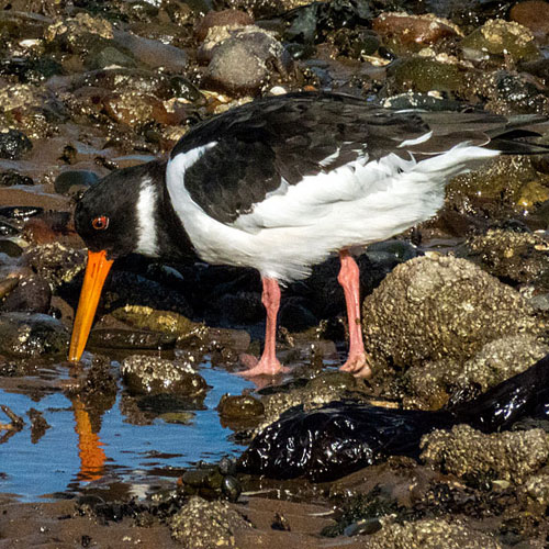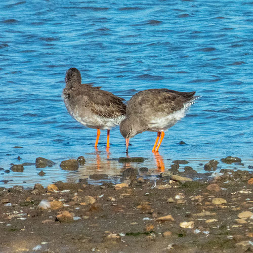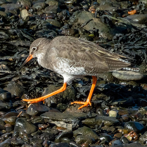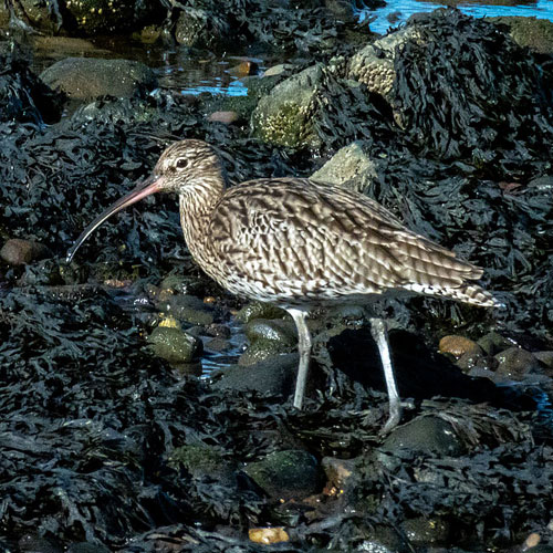 I was relieved to see some waders were feeding along the edge of the river. A wee Redshank and an Oystercatcher were searching the rocks and seaweed for invertebrates. In the shallows there was a Curlew and a Bar-tailed Godwit each probing the water and sands with their long