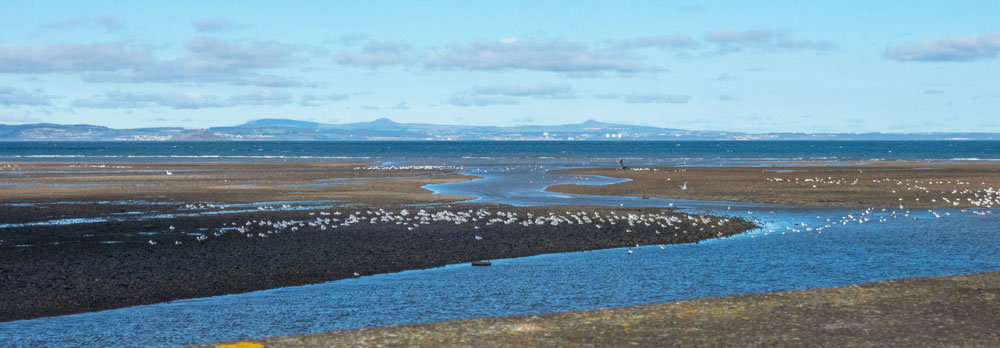 I returned to the car and drove a couple of hundred metres to the end of Goosegreen Road and began a little circuit that would take in views of the mouth of the Esk, the Firth of Forth and, what we’ve been calling the “New” Scrapes (which some contributors to social media have called “the Lagoons”). As predicted, the tide was very low, and the shoreline was a few hundred metres away.
