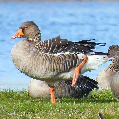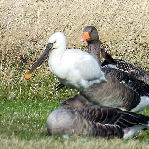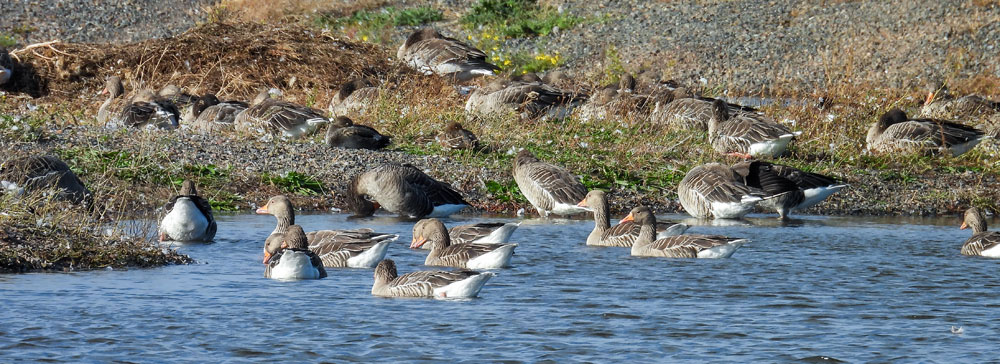 I made my way east of the estuary and scanned the seascape for anything of interest. It turned out to be a fruitless search. Eventually though I reached the start of the path that leads to the New Scrapes. From the first hide I estimated that the most numerous bird species seemed to be the Greylag Goose.