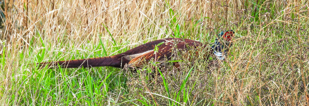 From the gate of that hide I could just make out a cock Pheasant creeping its way through the long grass, before vanishing deep into the vegetation.
