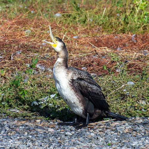 I saw more birds from the Causeway Hide, most of them were feeding or resting at the far side of the Haugh. A juvenile Grey Heron and juvenile Cormorant were a bit closer to the hide, and a Black-tailed Godwit was by the reeds directly opposite the hide, behind a large flock of Lapwings.