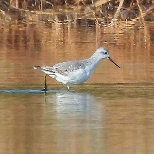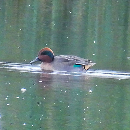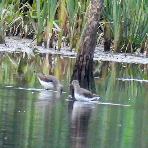 Near the Lapwing flock, Common Snipes were gathered. It was all very gloomy. Some Teal were also in the mix. A pair of Green Sandpipers flew in with their short, piping calls and landed just beyond the Snipe, and began wading. There were also a few Moorhens just beyond the reeds