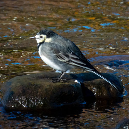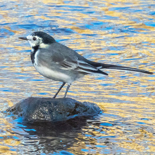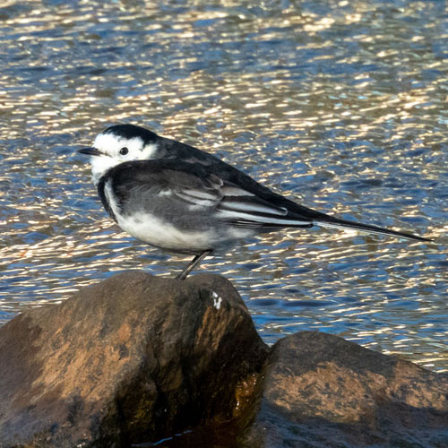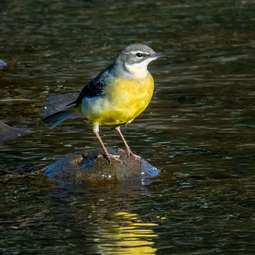 …..and a few Greylags Geese and a couple of Canada-Greylag hybrid geese. I could hear the familiar chirpings of Wagtails and when I moved further upstream I did come across male, female and juvenile Pied Wagtails hopping between large pebbles in the shallow areas of the River Esk. A beautiful Grey Wagtail also turned up, quite far out on the river at first, but after a patient wait it flew in amongst the Pied Wagtails, which allowed me to get an acceptable shot.