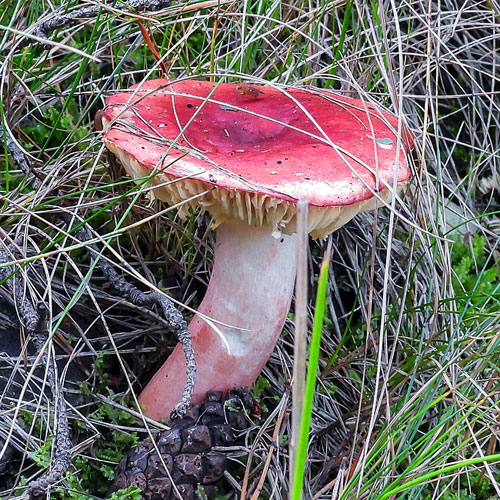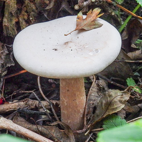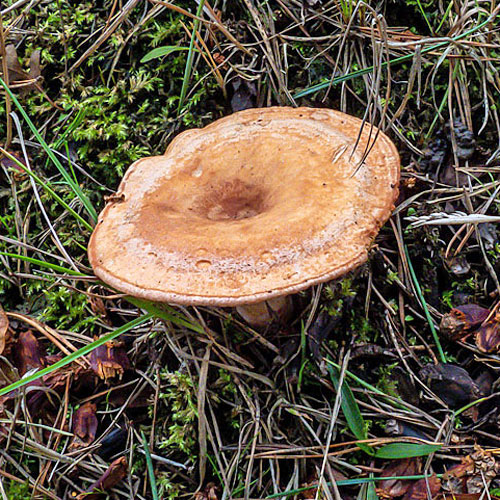 was Bloody Brittlegill, a common species mainly found, as in this case, beneath conifer trees. I followed this with another common fungus, Clouded Funnel, again under conifers. Also, just off the path on the dry edges of the same trees, I found a patch of Grey Knight fungi. My fourth discovery in the section of pine trees was Saffron Milkcap , a fungus that is more common in the northern parts of the UK.