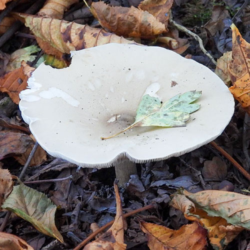There were a few foraging Grey Squirrels scurrying through the leaves searching for food. Just before the entrance to the Marsh Hide I came upon another fungus, The Miller, a common white mushroom of the woods and pathways.