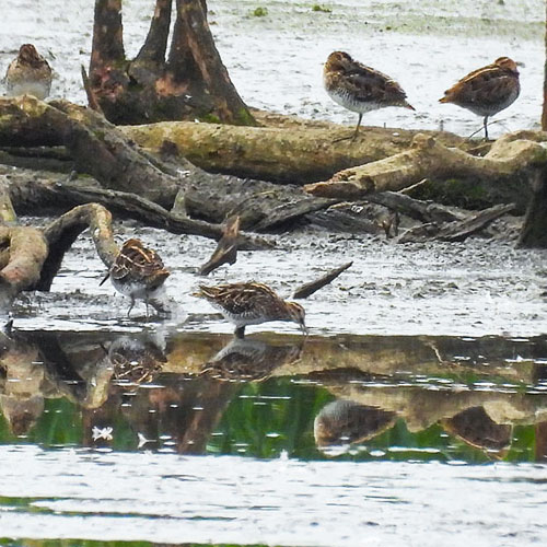 By the water’s edge by the site of the now demolished Phoenix hide, Common Snipe were partially hidden in the reeds.
