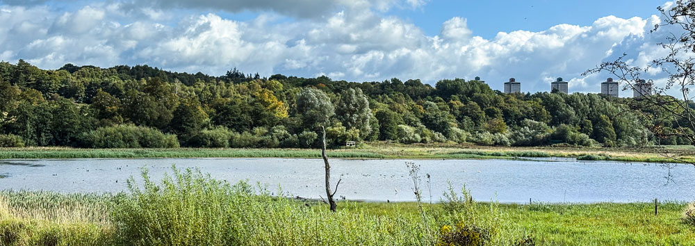 Eventually I reached the west side of the the reserve, at the site of the now demolished Phoenix hide and bund (embankment). The shot below shows the view over the Haugh as seen from the excavated bund.
