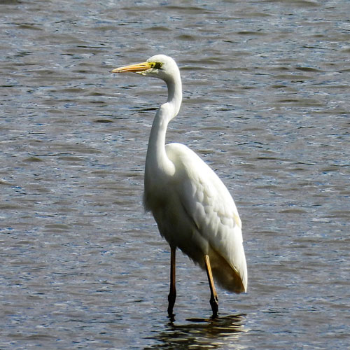 way across the dried mud. Then, to my surprise, a Great White Egret came into view fairly close to where I was standing. I fired off a few shots of the Egret then …..
