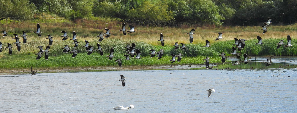 …. a flock of Lapwing flew in from the south, circled the Haugh a few times, and then landed in the shallows at the opposite side of the water.