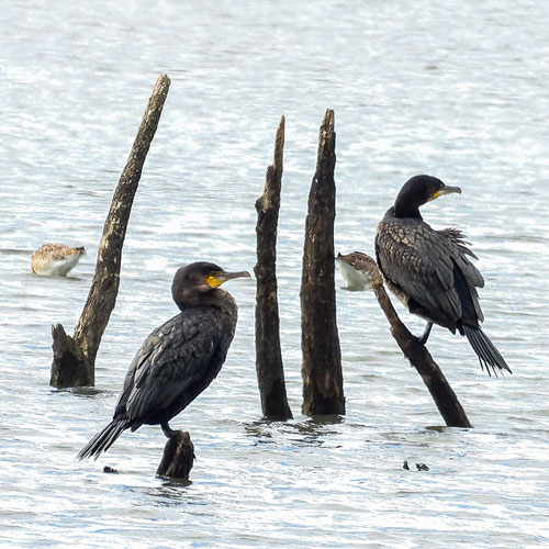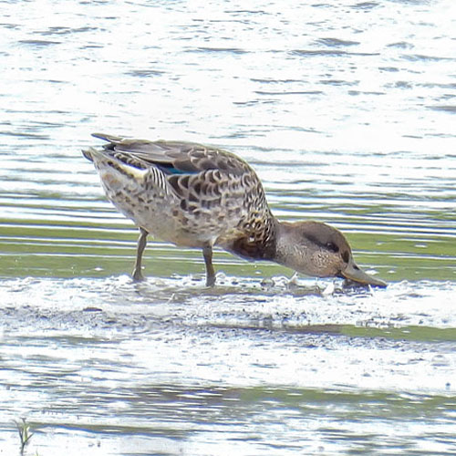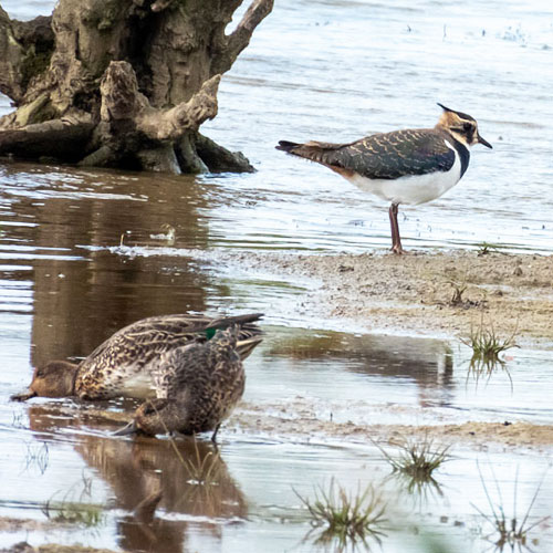 An eclipse Teal was feeding near the Cormorants and a few Lapwings were