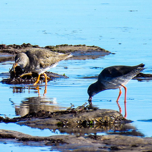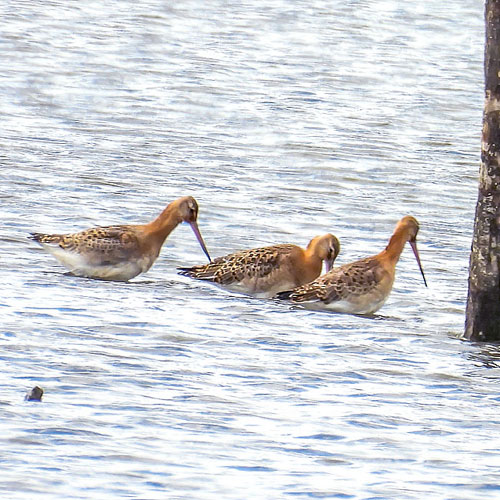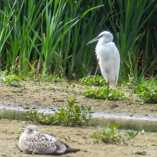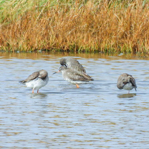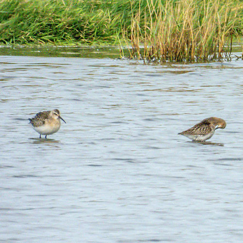 There were Curlew Sandpipers wading with the Dunlins. These birds are very similar, but Curlew Sandpipers are a bit taller and have white underparts with no black streaks. Other birds there were Herring Gulls, Black-headed Gulls and Redshanks.