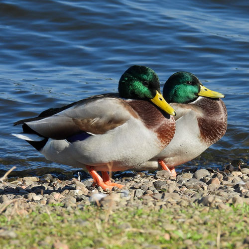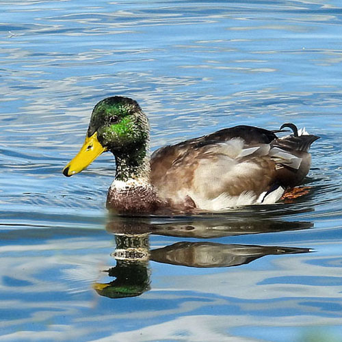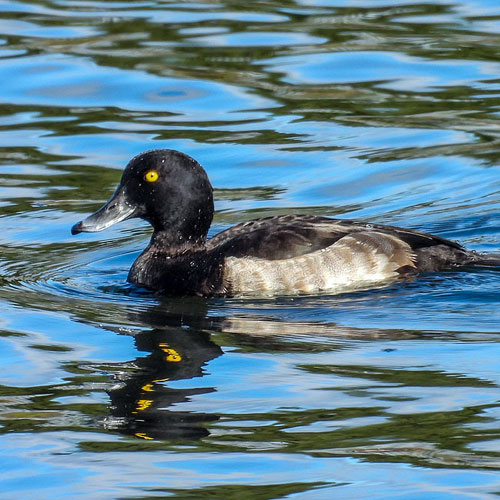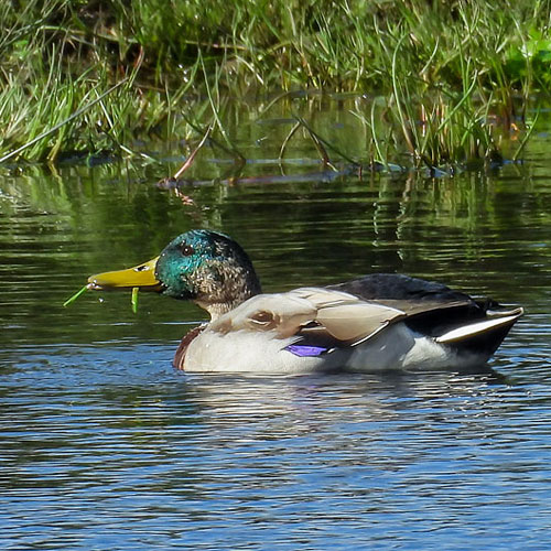 Reedmace) leaf. Near the Scaup was a lovely Mallard in eclipse plumage which is very like the female’s plumage (I find the yellow bill with a black tip distinguishes the male from the female - whose bill is grey and orange).