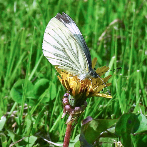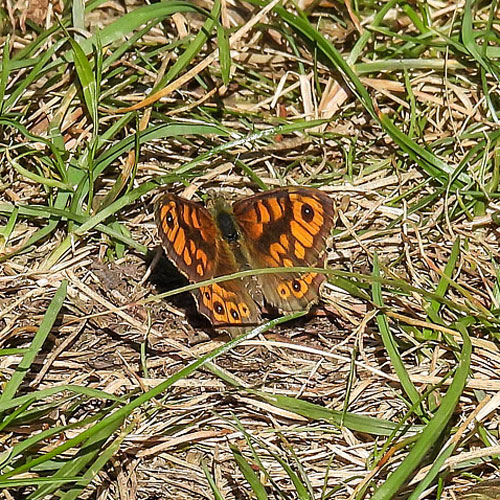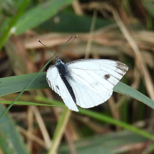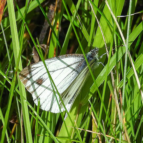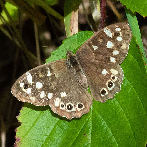 It was sunny though when I watched the Mallards that were slowly changing their eclipse plumage into the more familiar breeding plumage. A few Coots were diving for pondweed in the deep water in front of the hide. I also spotted a few Gadwall in the waters beyond the scrapes. On my way out of the hide there was a Green-veined White butterfly sunning itself on a blade of grass. My final picture was of a Speckled Wood butterfly that was resting on foliage beside the path that would take me up the hill towards the car park.