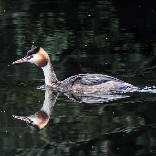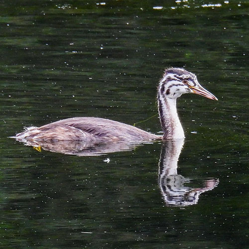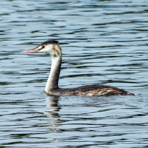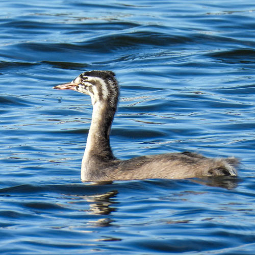 The swans were mainly feeding but there was a quite a bit of posturing as they intermingled. A few Black-headed Gulls were in the mix, but not as many as I expected. Two Great Crested Grebes, an adult followed by its chick were at the very southern tip of the loch. The chick was following the adult constantly crying for food. The adult repeatedly dived for fish and…..